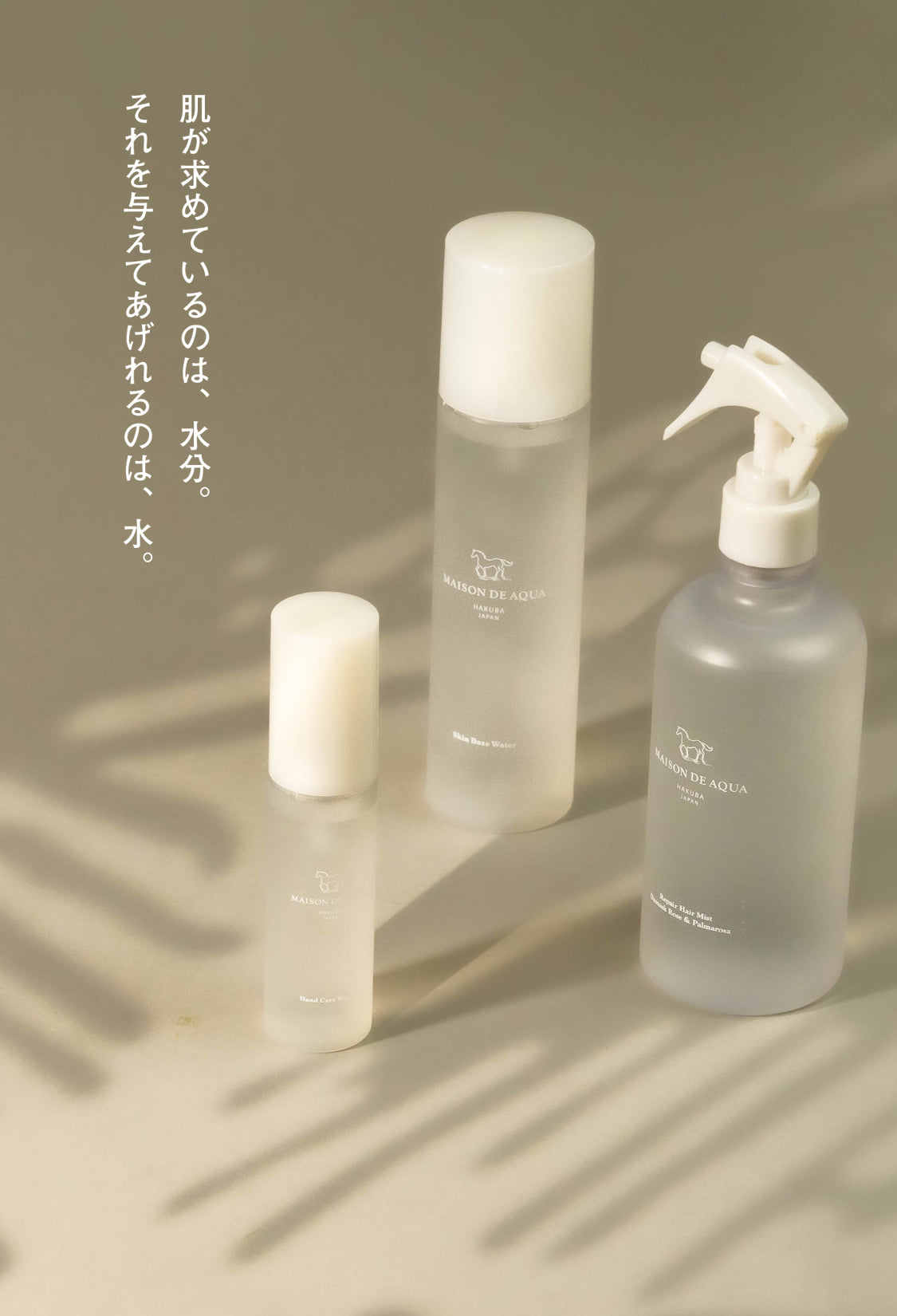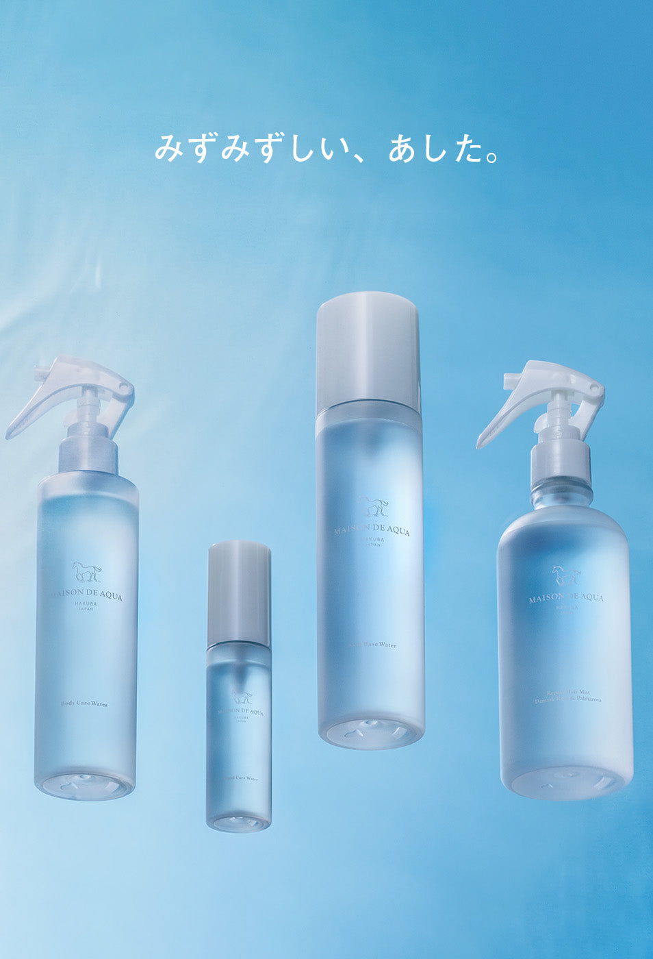 メゾンドアクア製品は「水の聖地・長野県白馬」の良質な天然水をベースに大自然の恵みを受けて開発されています。